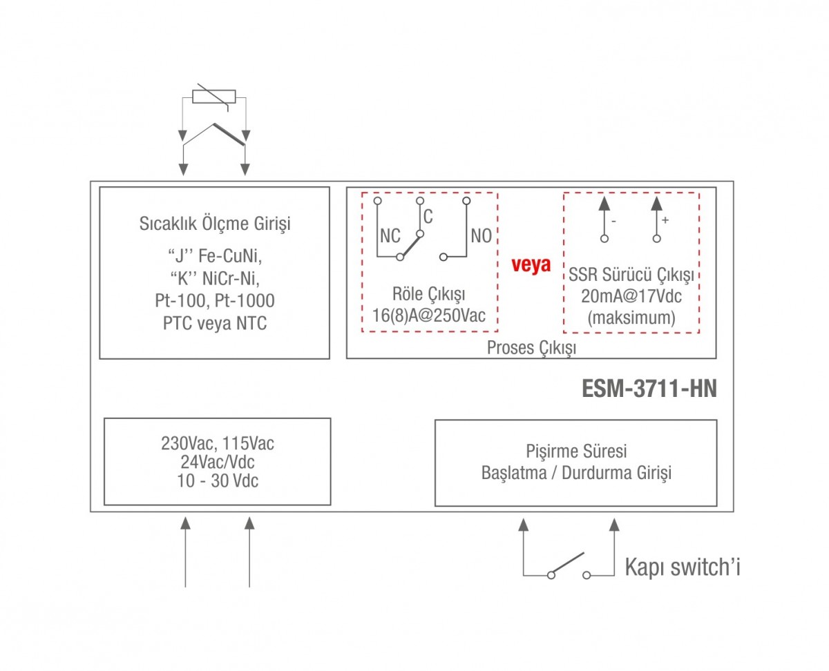 • Sensör PTC, NTC, J, K giriş seçenekleri